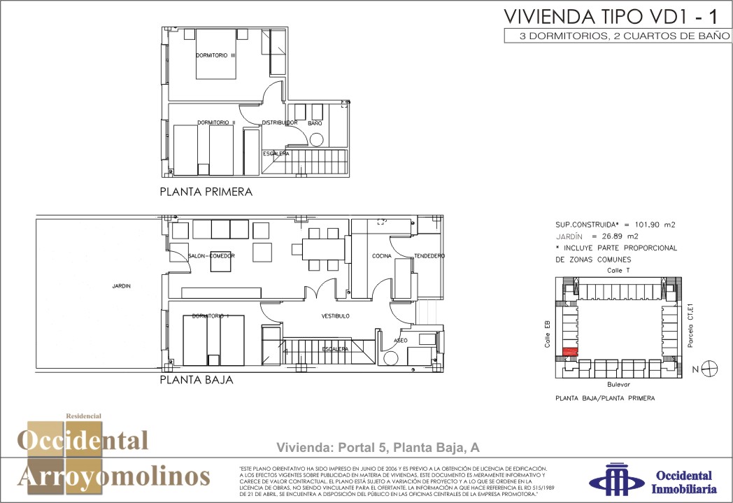 · Residencial Occidental Arroyomolinos presenta varios modelos de viviendas: Tipo Dúplex, Una Planta, Tres Plantas y Bajos con Jardín de uso Privativo.